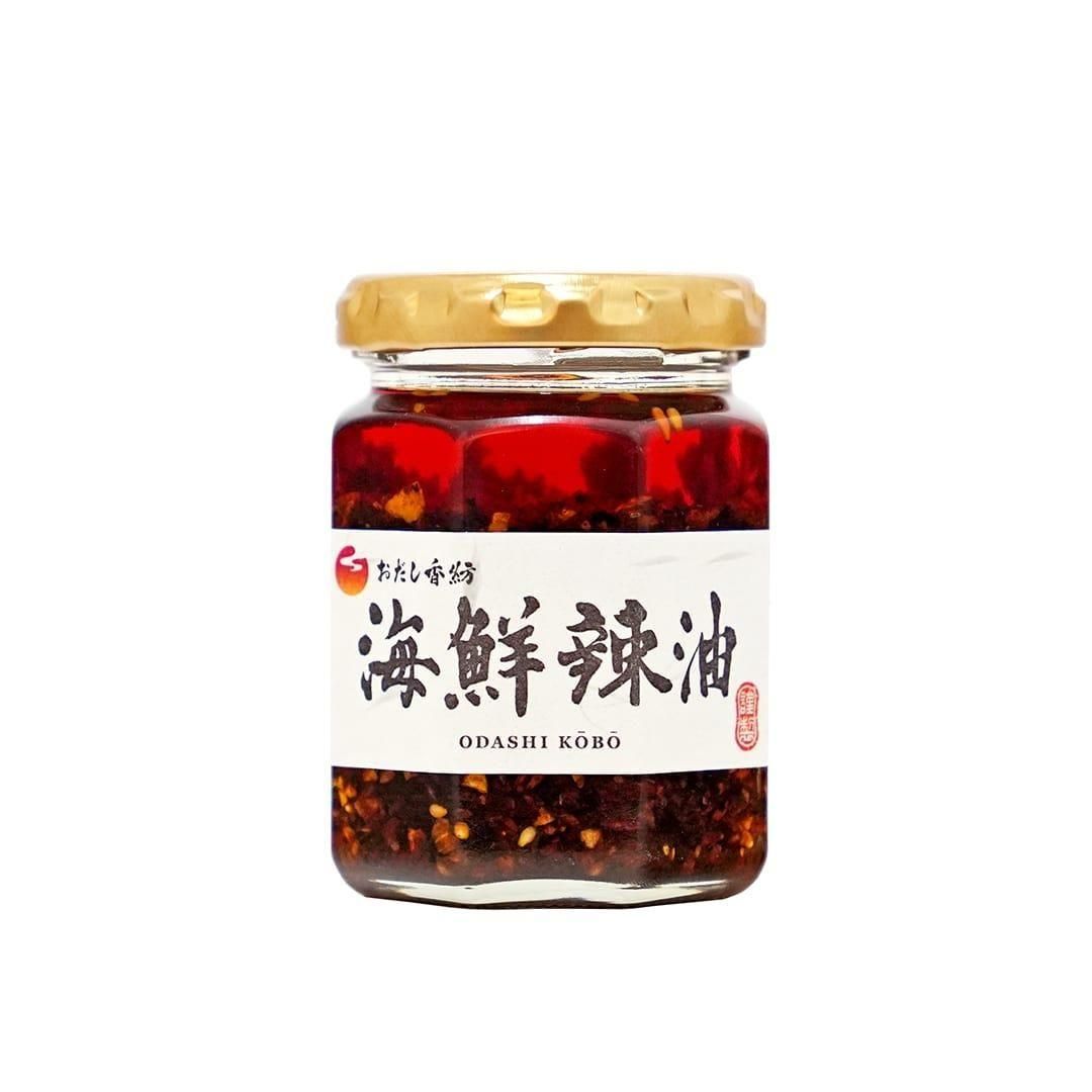 おだし香紡特製の「食べるラー油」です。海の旨味をご堪能ください。