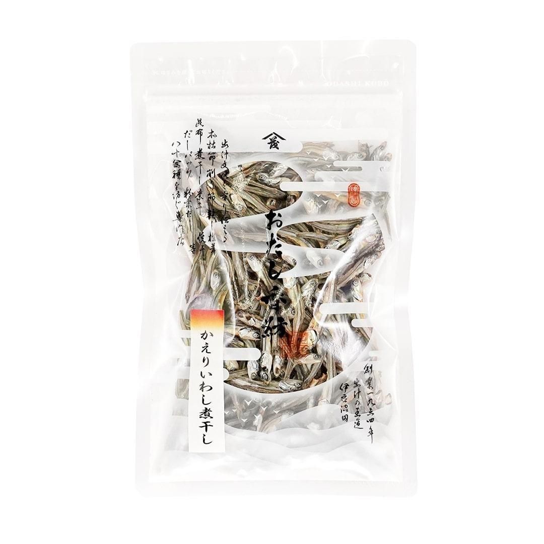 小ぶりな身にうま味がぎゅっとつまっています。苦味や魚くささは控えめで、くせのない上品なおだしが取れます。かえり鰯は漁獲量が少ないことに加えて、上品な中にも存在感のある良質なおだしが取れるため高級な煮干しです。汁物のおだしはもちろんのこと、炊き込みご飯や炒め物の具材にしても美味しくいただけます。