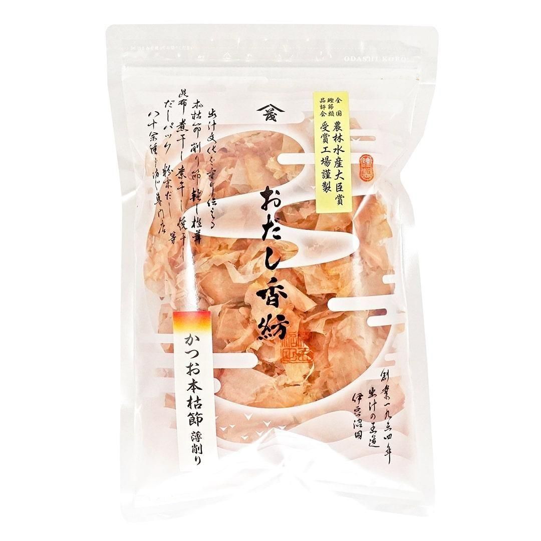 日本の伝統食材、和食の基本となる鰹節。その最高級品がかつお本枯節(ほんかれぶし)です。おだし香紡の本枯節は、4年に1回開催される全国鰹節類品評会で農林水産大臣賞を受賞した指宿(いぶすき)山川イリヤマサの職人が作っています。本物の豊かな香りと凝縮されたうま味を味わうことができるのは、熟練の職人が時間をかけて丁寧に仕上げた本枯節だけです。