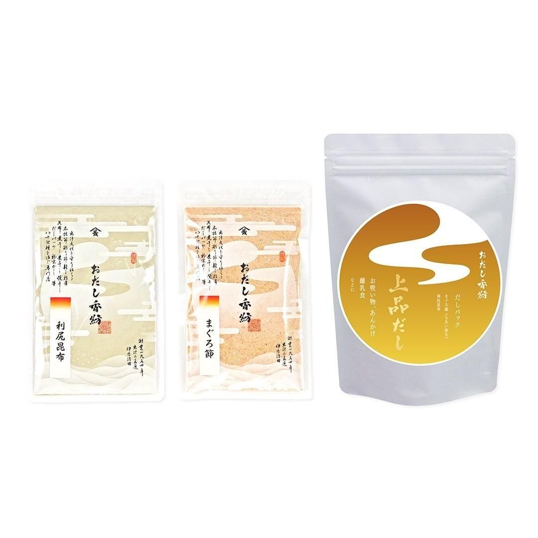 離乳食におすすめのおだし3種をお試しいただけるセットです。