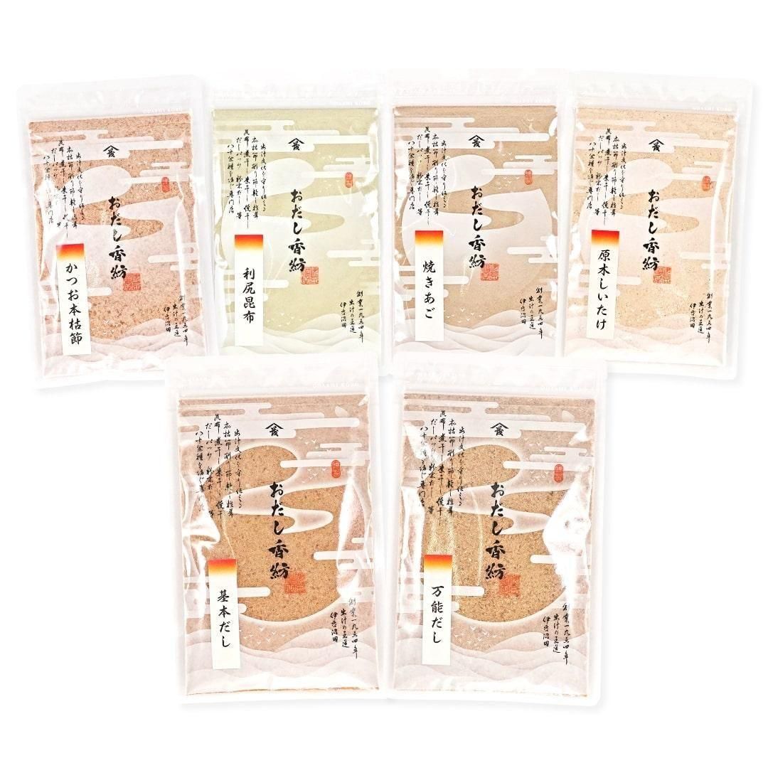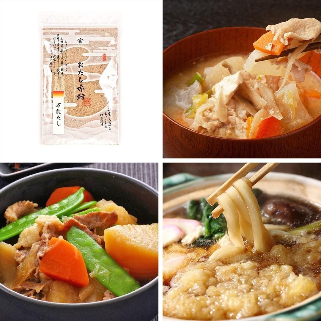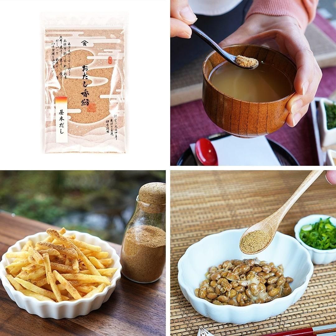 おだしを取る手間が少なく、ひとふりで料理にうま味と香りを加えられるのが、粉末だしならではの魅力。 おだし香紡では、品質と無添加にこだわり、日本全国から厳選した原材料だけを使って丁寧に製造しています。 うま味調味料・保存料・酵母エキス・食塩・醤油などは一切加えず、出汁素材そのものの香りと味わいをお楽しみいただけます。