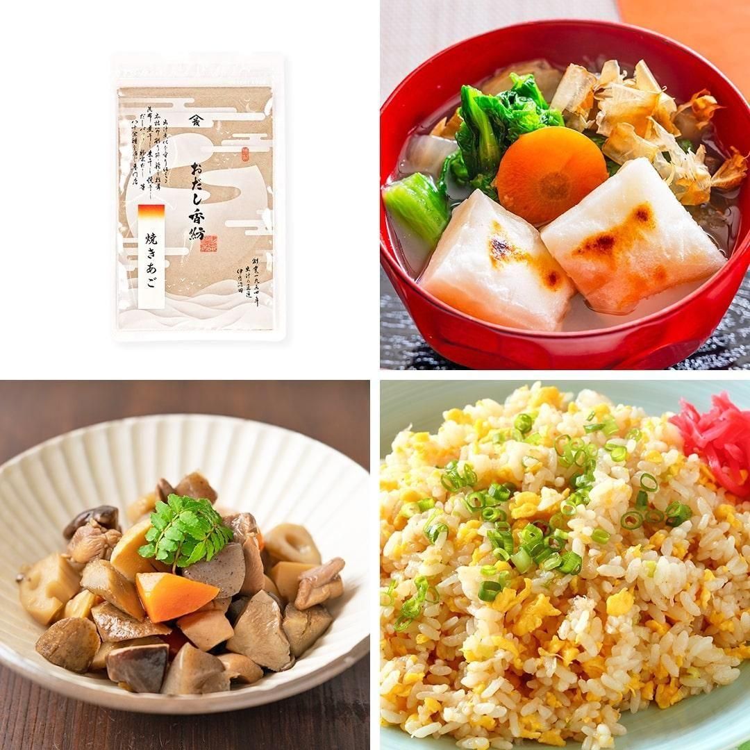 ・焼きあご粉末だし  : お味噌汁、煮物、チャーハンなど